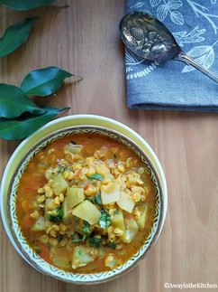 In the southern states of Tamil Nadu and Kerala, you will find a similar version of chana dal lauki, in stews which are known as koottu. A koottu has lentils (dal) added to vegetables, and usually has coconut although coconut is not mandatory. It's not as watery as a sambar and not dry like a stir fry dish such as a thoran or poriyal. The lentils commonly used in a koottu are hurled yellow split moong dal, hurled white split urad dal or tur dal.